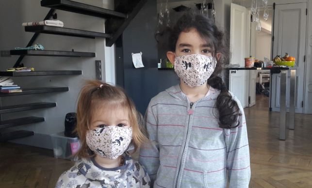 Elles sont mimi, Lou, l’ainée est tout le portrait de son père, Emma, celui de sa mère, et les masques leur vont à ravir.